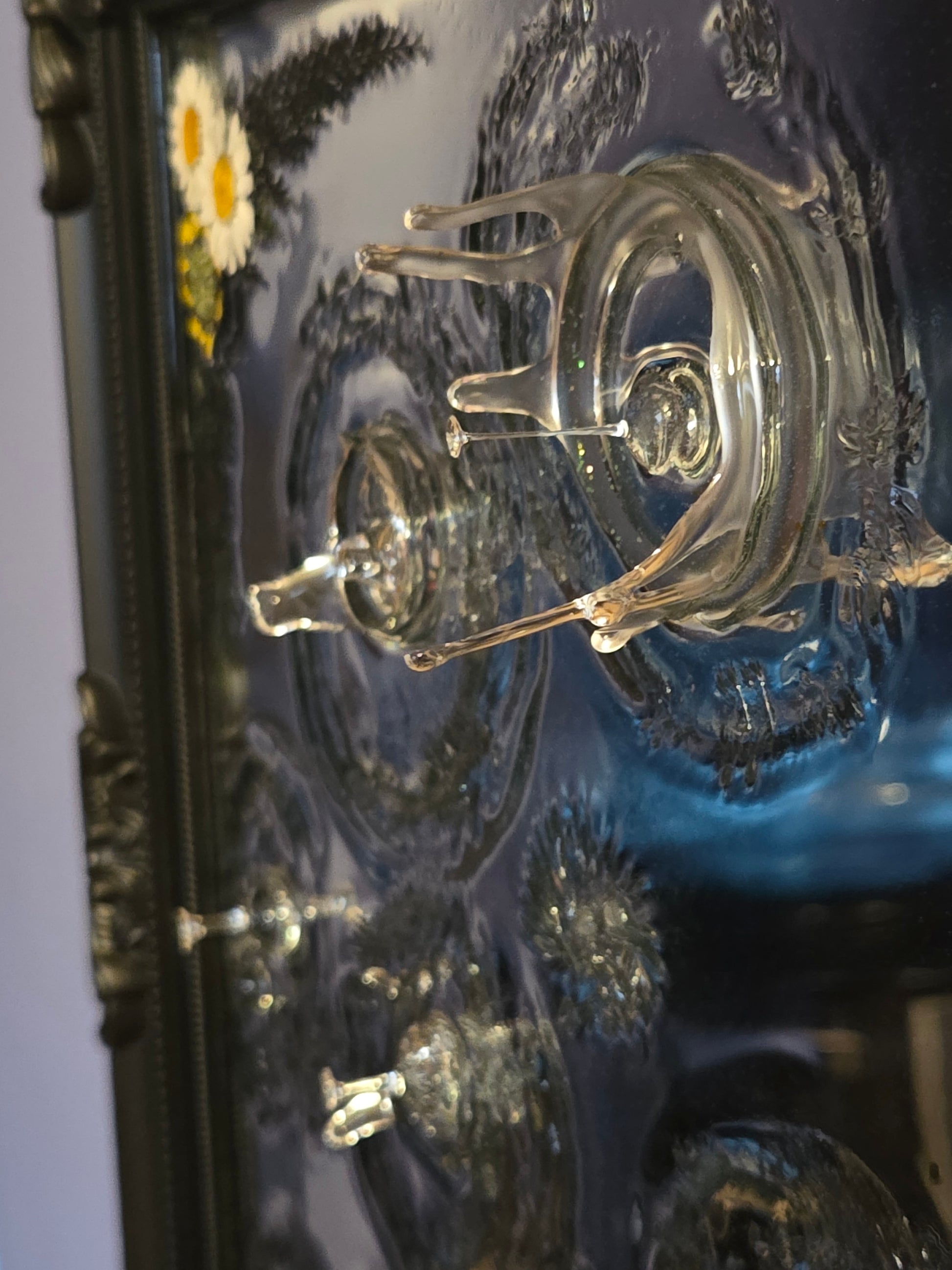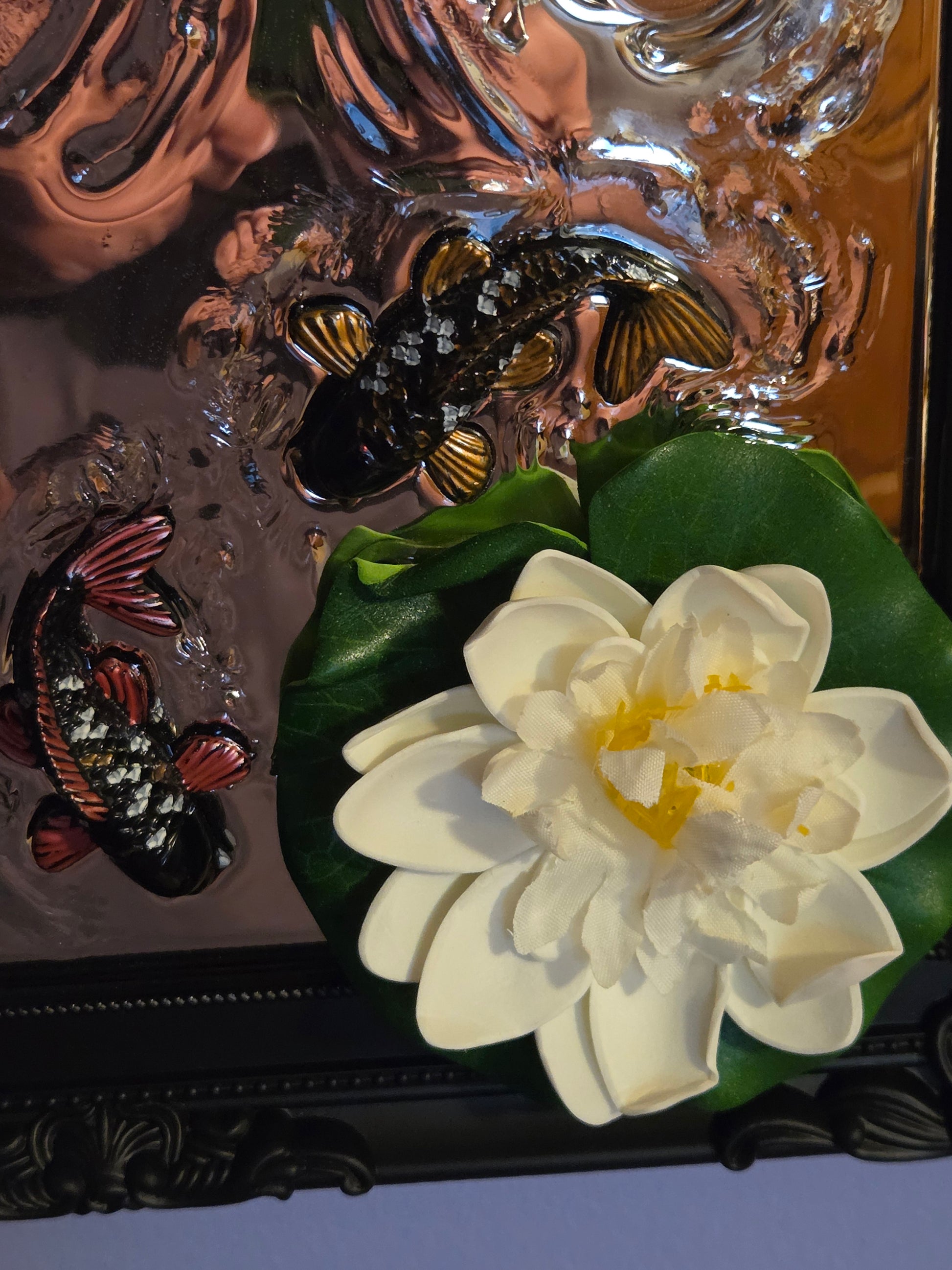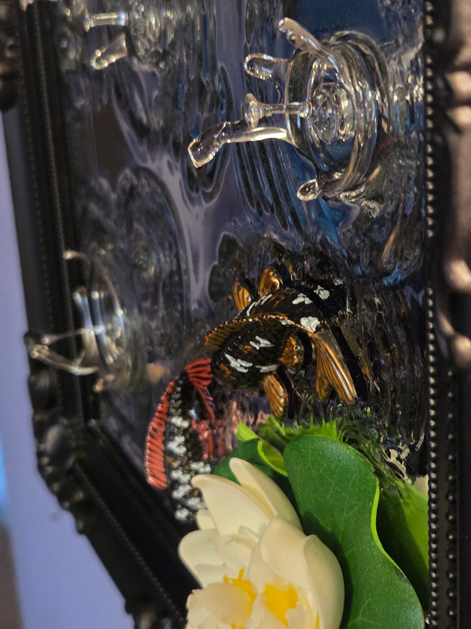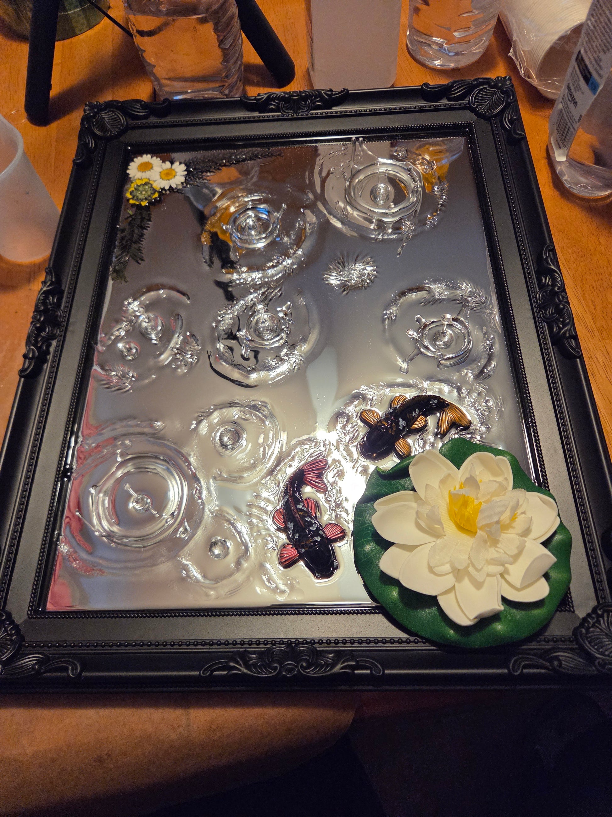 This framed 3d effects mirror features resin handmade effects! 15 inches 12 inches, this is a big piece of art ready for your wall!